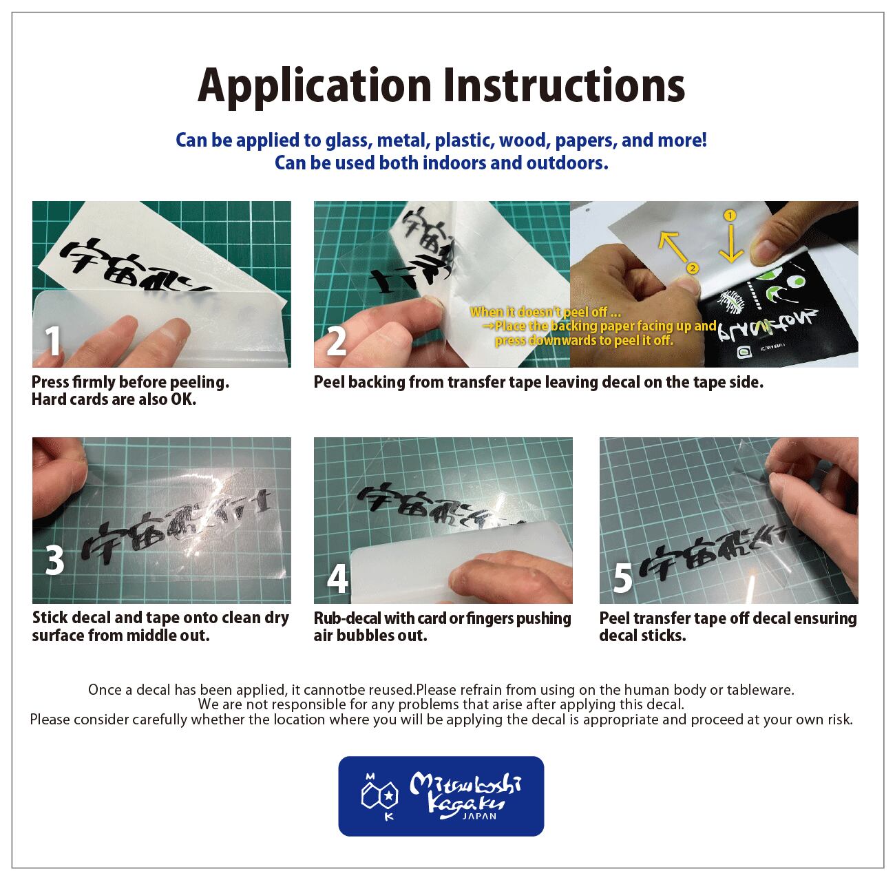 当ステッカー貼り付け後のトラブルにつきましては、当方は一切の責任を負いません。